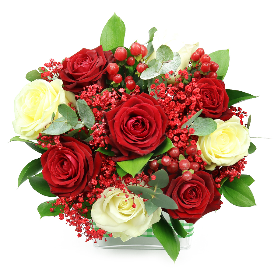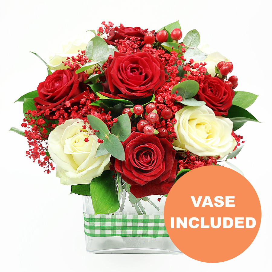 Our Romantic Valentine's bouquet showcases a beautiful mix of red and white roses, artfully arranged to create a stunning display that speaks volumes of your love.